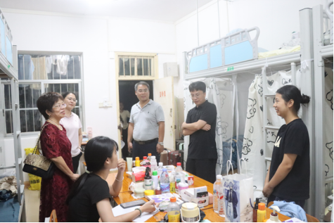 为切实了解2025级新生入学后的适应情况,9月15日晚,外国语学院院长韦丽秋、党委副书记周茜、副院长钟伟轩和新生班主任们深入学生宿舍看望新生,为初入大学校园的新生们送去关怀与温暖。
