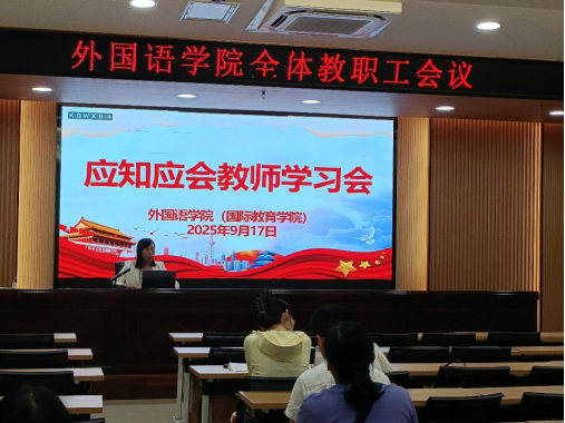 9月17日,河池学院外国语学院(国际教育学院)全体教职工召开教学会议,围绕本科教育教学审核评估线上预评估、“教风学风”教育教学政策文件学习、应知应会教师学习等内容,推动学院教育教学工作提质增效。