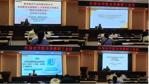 随后,各教研室依次开展教育教学相关文件学习分享。各教研室结合教学实际交流心得,深化了教职工对本科教育教学改革与师德师风建设的认知。
